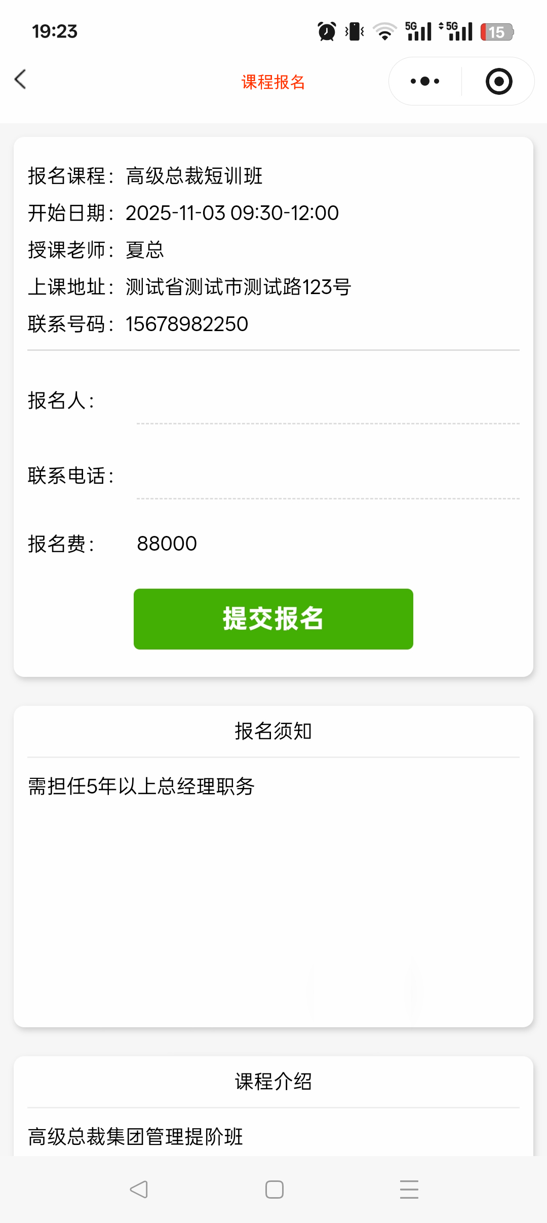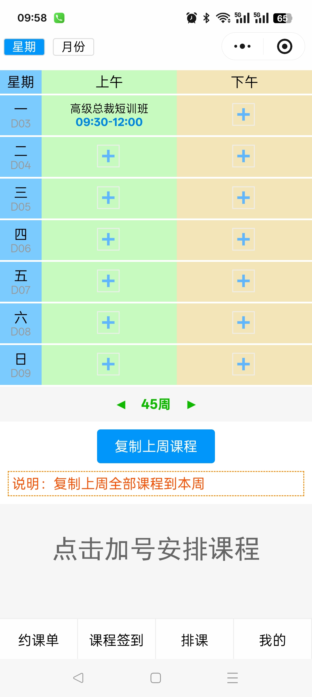 老师端:添加/编辑课程,排课(按周查看,复制,按月查看),签到码,报名码,查看签到情况,查看课程报名情况。