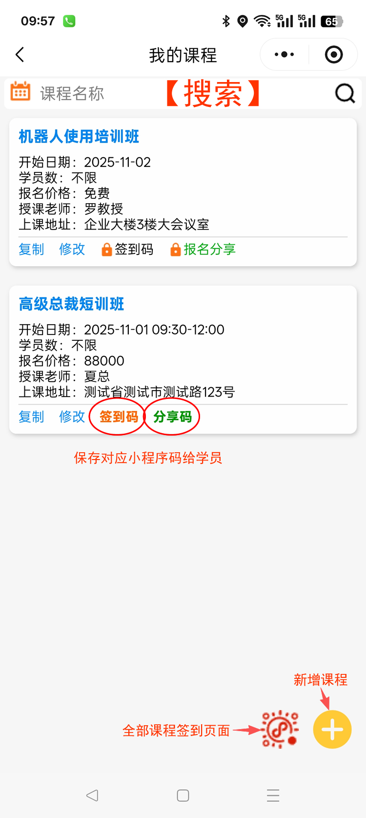 学员端:扫码签到,扫码报名课程